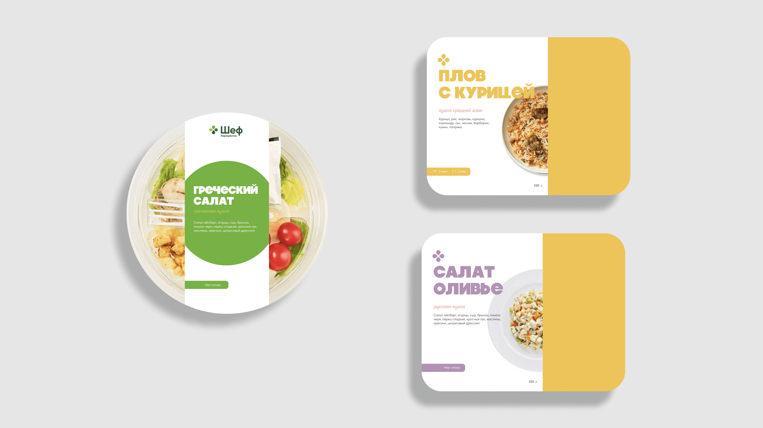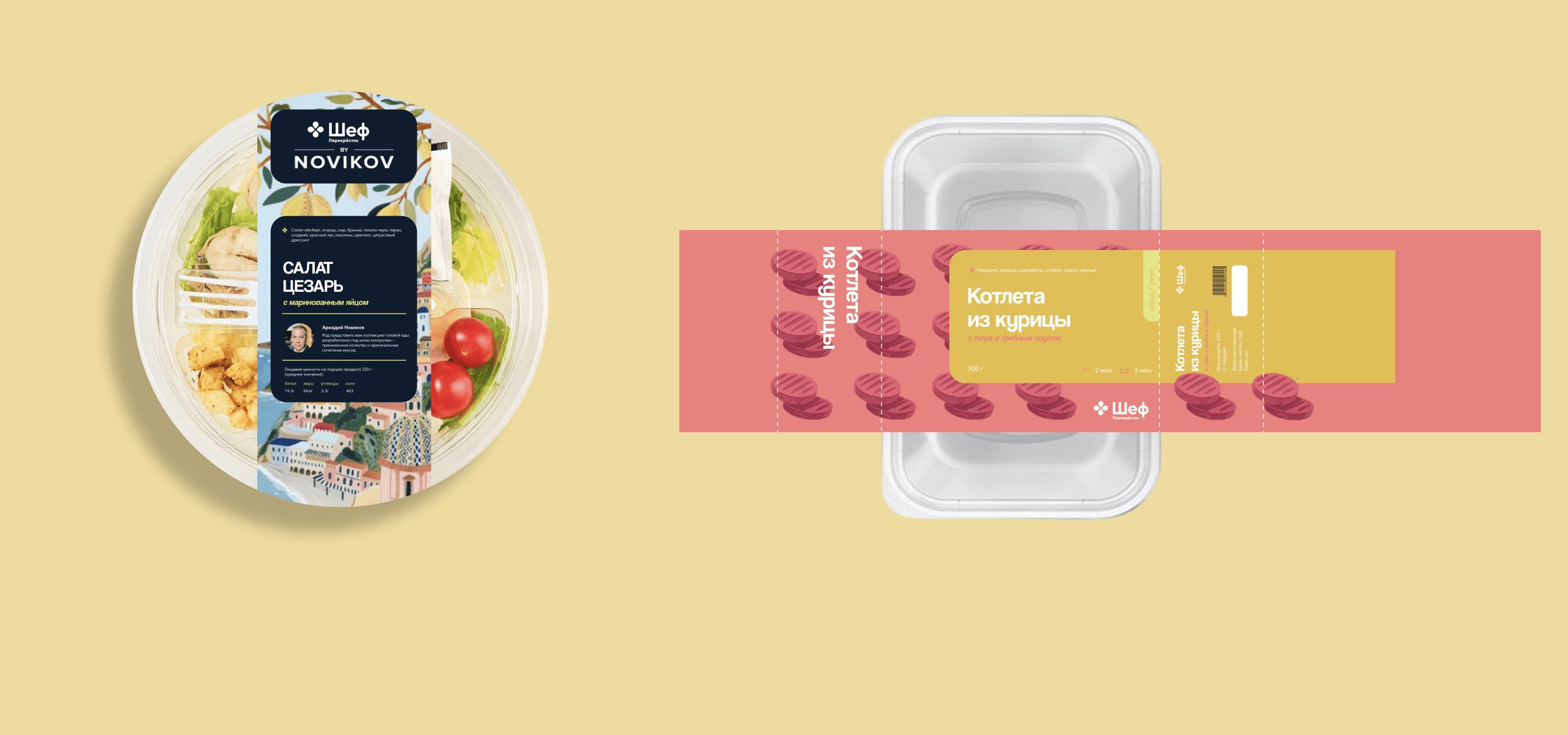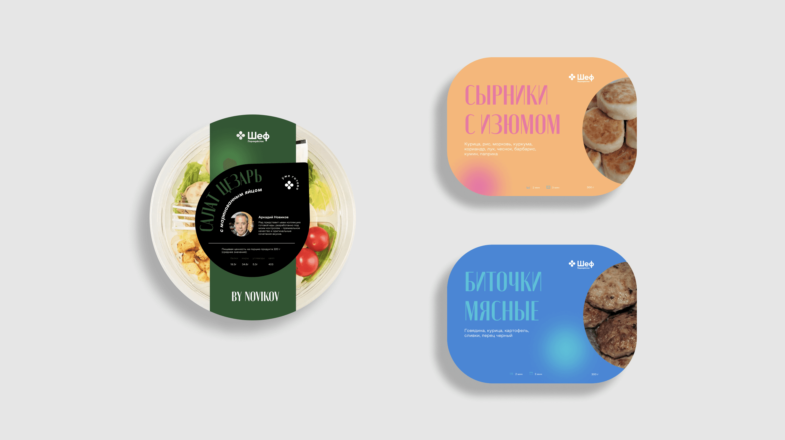 We created a fresh packaging concept for Perekrestok’s premium ready meal collection. The rebranding gave the line a bold, modern look, making ready-to-eat food feel more inspiring and stylish. Part of the collection was developed in collaboration with chef Andrey Novikov, adding an exclusive touch of fine dining to everyday meals.